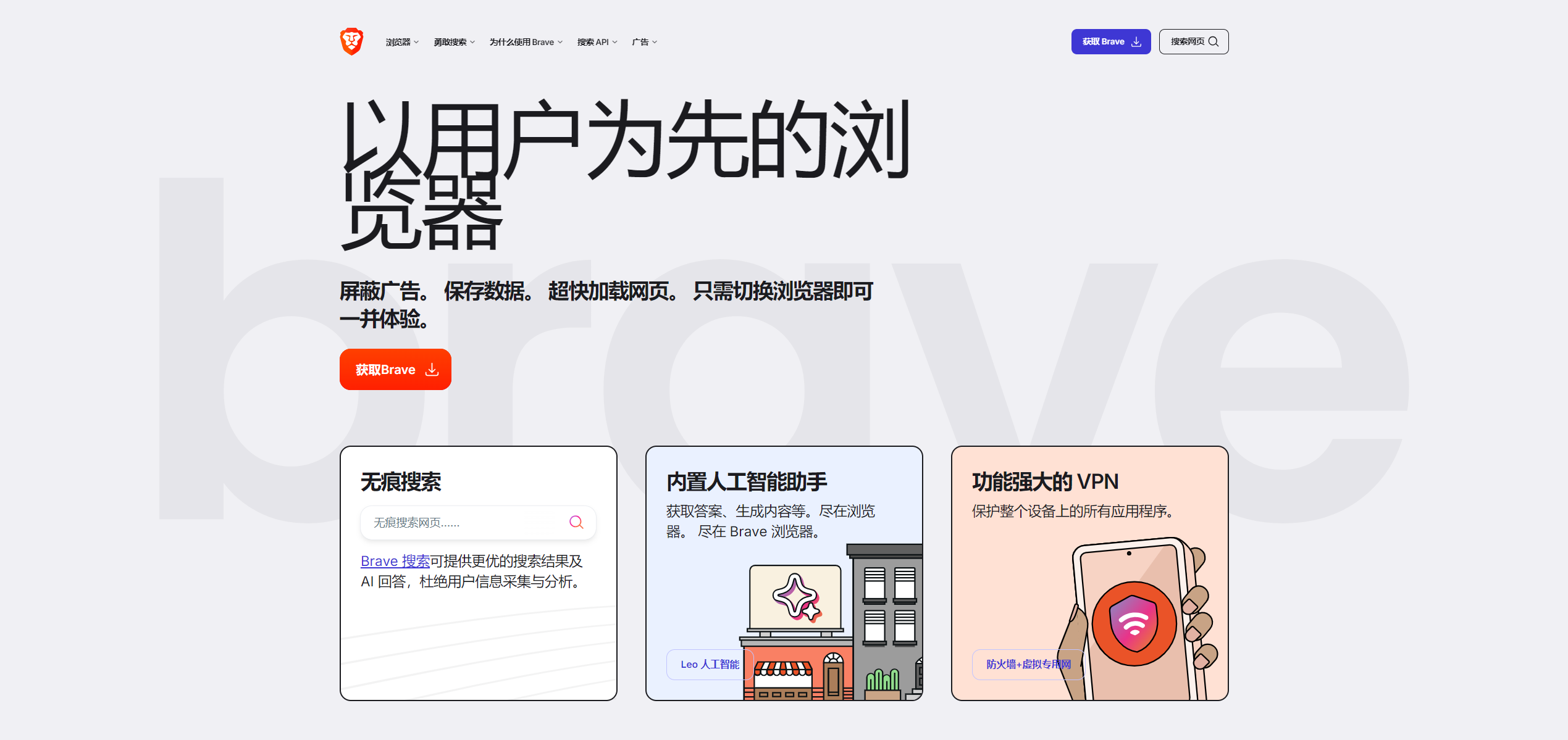 Brave 同样是一款快速、私密、安全的浏览器,内置第三方广告的广告拦截器,既能拦截大部分的网页广告,也能拦截初入网页的“是否接受 Cookies”弹窗,Brave 能保证你绝不受广告弹窗的侵扰,同时帮你节省流量,多倍提升上网速度(自称比 Chrome 快三倍);并且默认开启“全球隐私控制”,使用高级 VPN 加密每一个链接,防止网站获取、出售你的数据。
