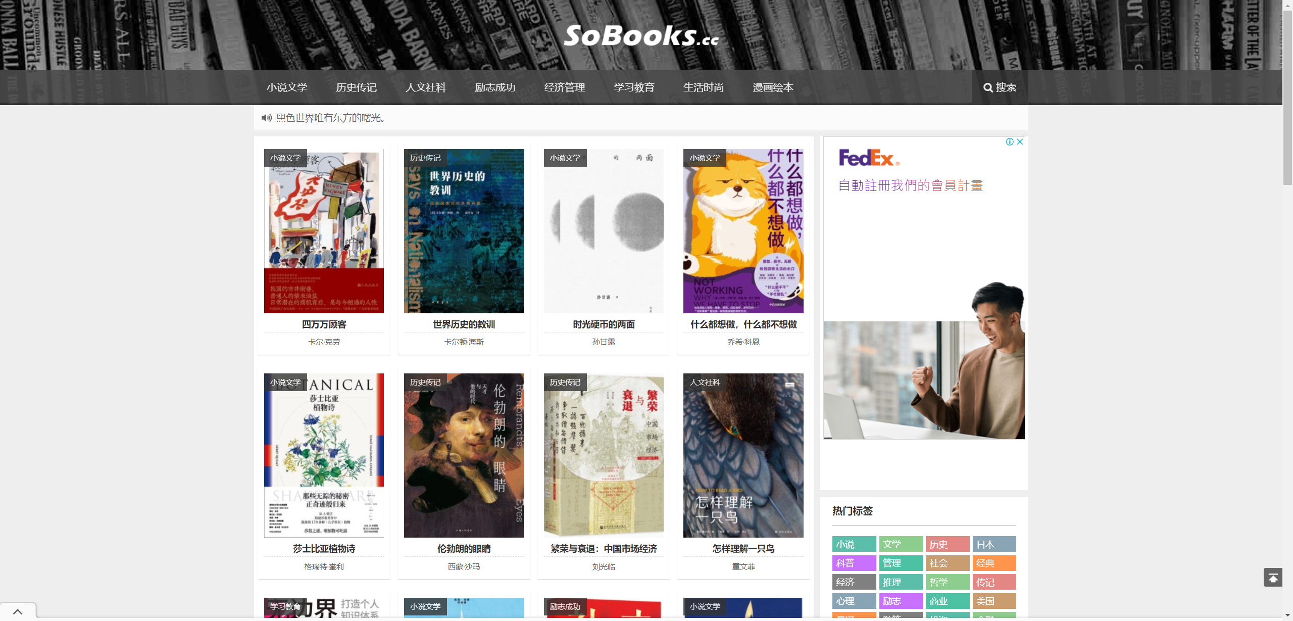 SoBooks 是一个电子书免费下载网站。网站收录了涵盖几十种题材的图书和漫画,皆可免费下载,但是此网站的下载流程跟前文推荐的两个电子书下载网站相比稍嫌麻烦一点,需要扫码关注公众号获取提取码才能下载,不仅如此还需要观看一则视频广告才能继续访问网站。