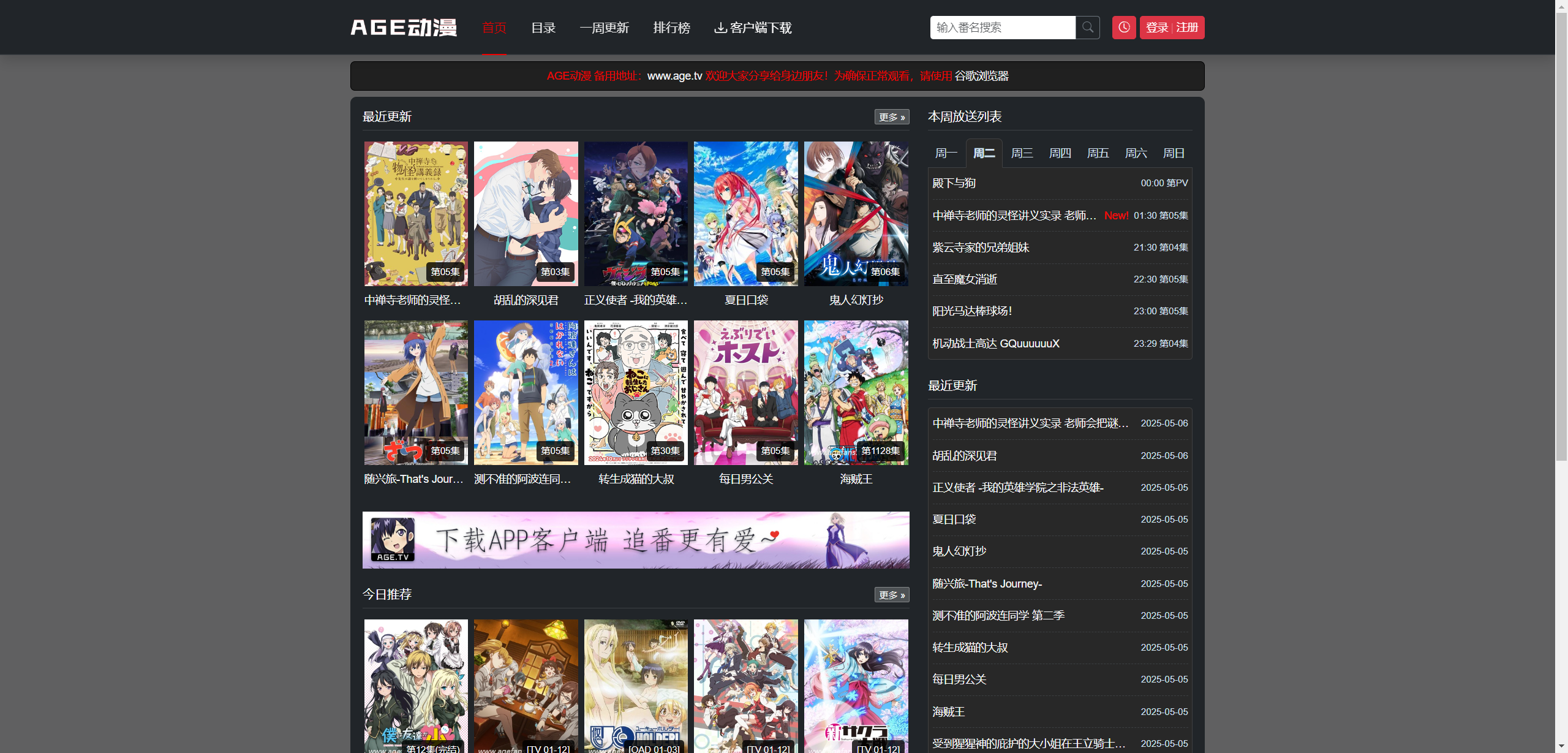 AGE 动漫同时提供网页版与手机客户端版,由于网页版网址常做变动,因此推荐大家收藏其 Github 地址发布页或直接下载客户端。