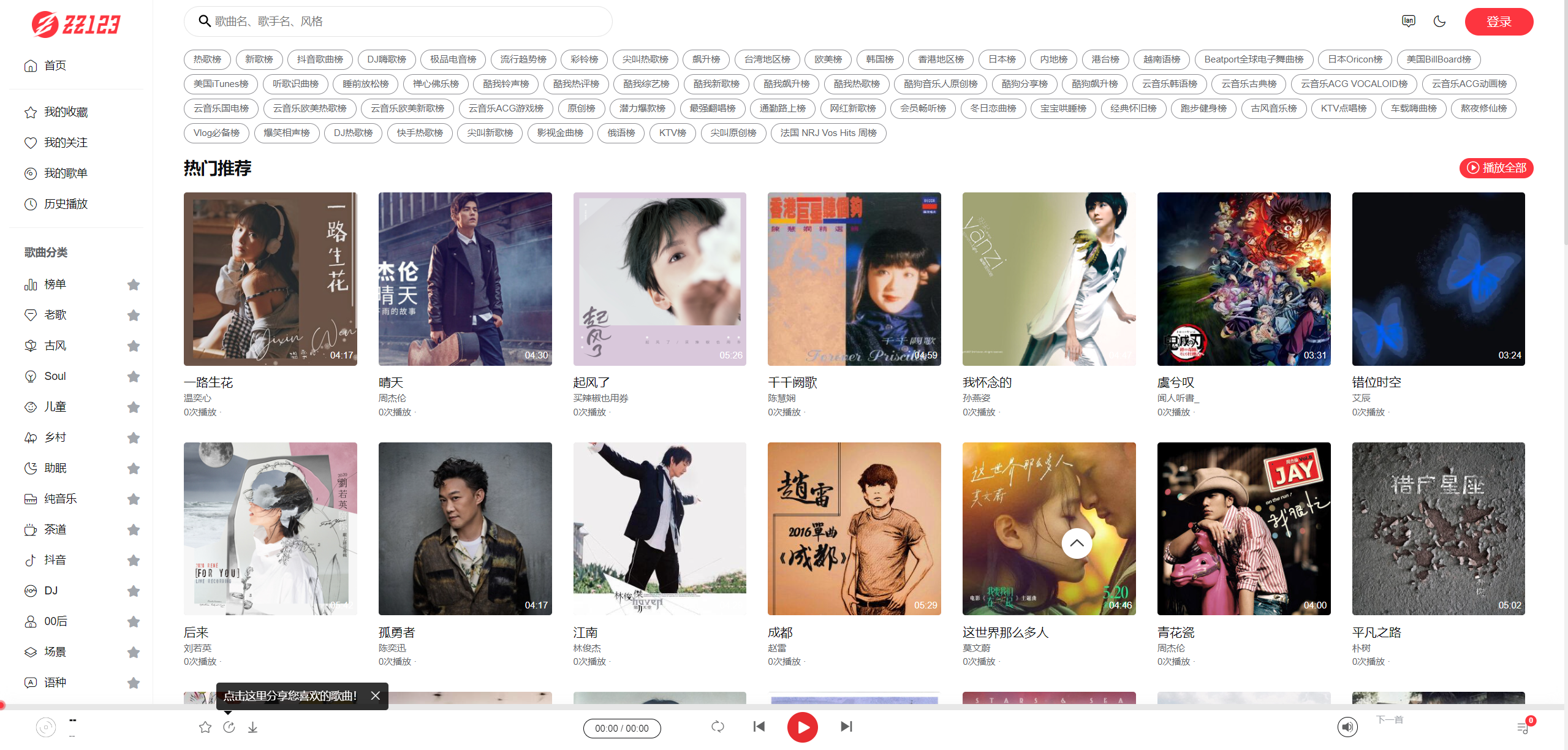 ZZ123 种子音乐是一款便捷的在线音乐播放平台,提供海量音乐资源,涵盖周杰伦、陈奕迅、周深、王菲、邓紫棋、Taylor Swift、OneRepublic 等国内外热门歌手和乐队的作品。平台内的歌曲按类别、风格和受众精心分类,并设有多种人气榜单,方便用户挑选和查找。只需轻点喜爱的歌曲,即可将其加入播放列表或歌单,同时支持下载与收藏。界面美观、操作简单,用户无需购买会员即可免费畅听所有歌曲。
