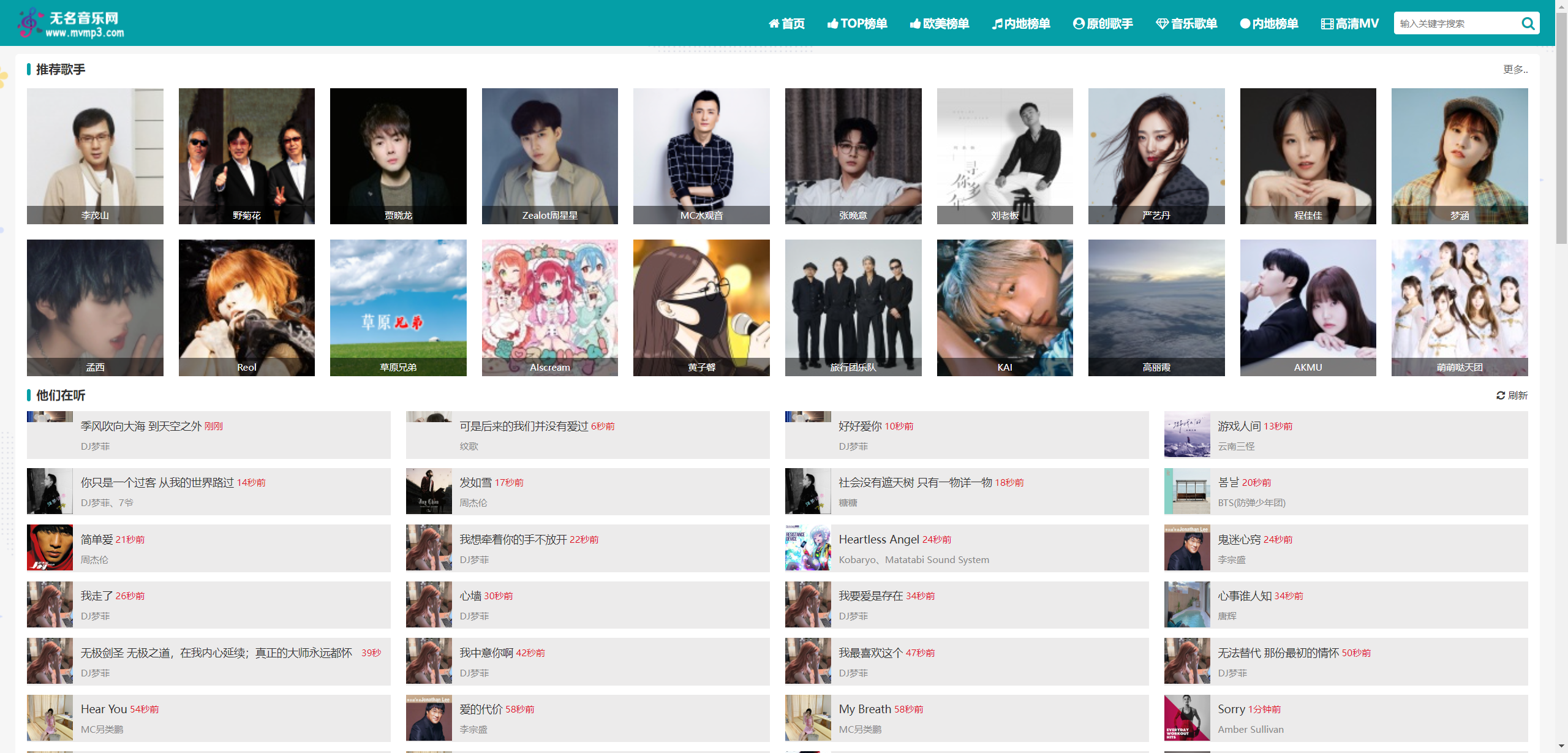 无名音乐网是一款免费开放的音乐播放网站,其曲库涵盖丰富,既有知名歌手如蔡依林、单伊纯、薛之谦、周杰伦、Rihanna、Billie Eilish 等的作品,也包括大量影视剧、动漫与游戏配乐和一些较为小众的原创音乐作品。用户可在首页查看实时更新的各类音乐排行榜,按场景、风格、时间或国家进行筛选,快速找到所需曲目。该平台听歌无需注册登录,打开即可听歌、下载。除此之外,平台还提供分类清晰的歌单推荐以及高清视频 MV,让用户轻松享受多样的音乐形式。