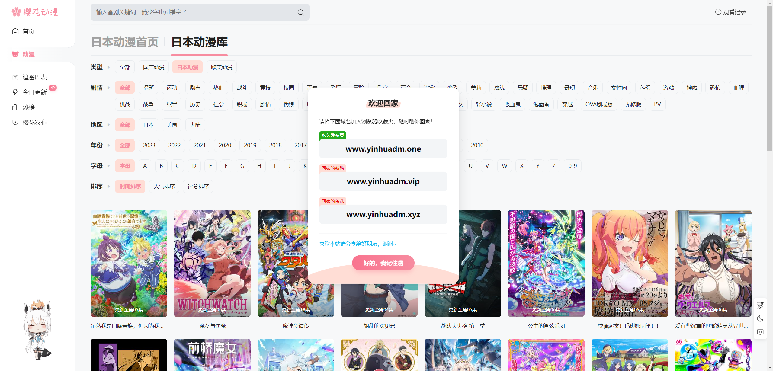 樱花动漫是一个比较古老的动漫网站,资深二次元肯定熟悉它的名字,该网站状态不太稳定,经常更换网址,所以大家如果点击“官网地址”打不开,则点击右边的“官方网址发布页”,查看网站最新地址。