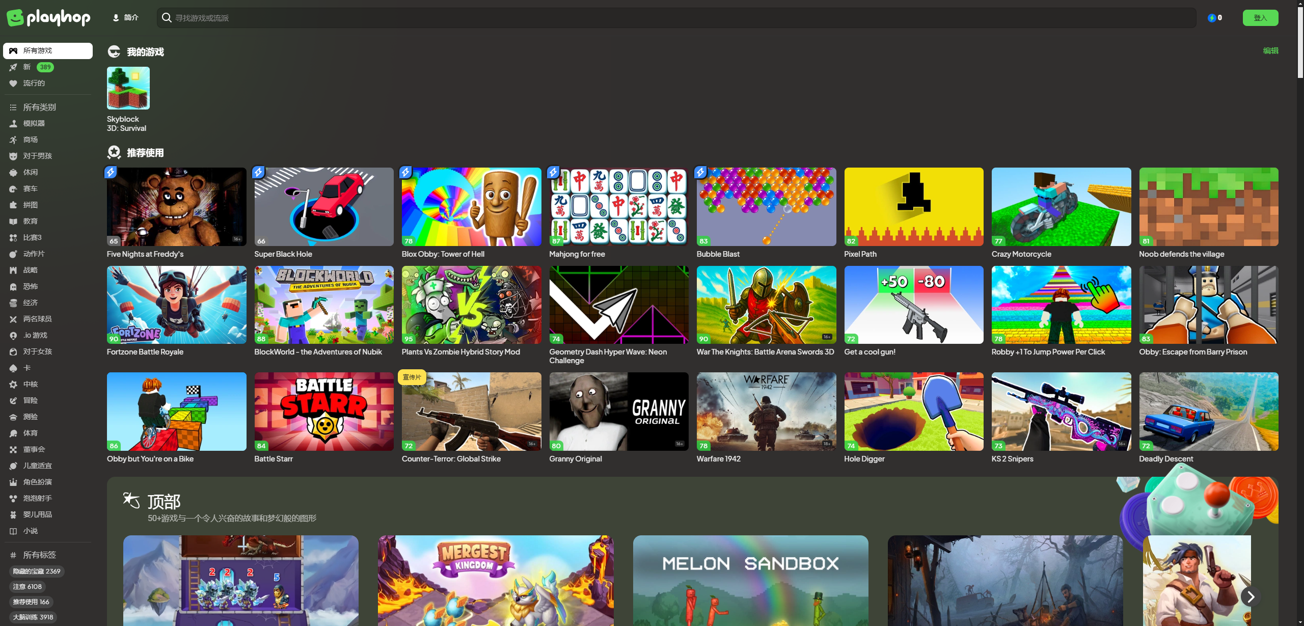 Playhop 是一个免费的在线游戏平台,提供数万款由创作者精心开发的原创小游戏,这些游戏画面精美、玩法有趣而新颖,覆盖数十种游戏类型,如休闲、动作、设计、运动、冒险、模拟、解谜、益智、RPG 等等,不论年龄、性别都能在这里享受到游戏的乐趣。Playhop 首页支持使用标签筛选,并可查看热门游戏排行榜。网站支持中文,以及其他十多种语言。