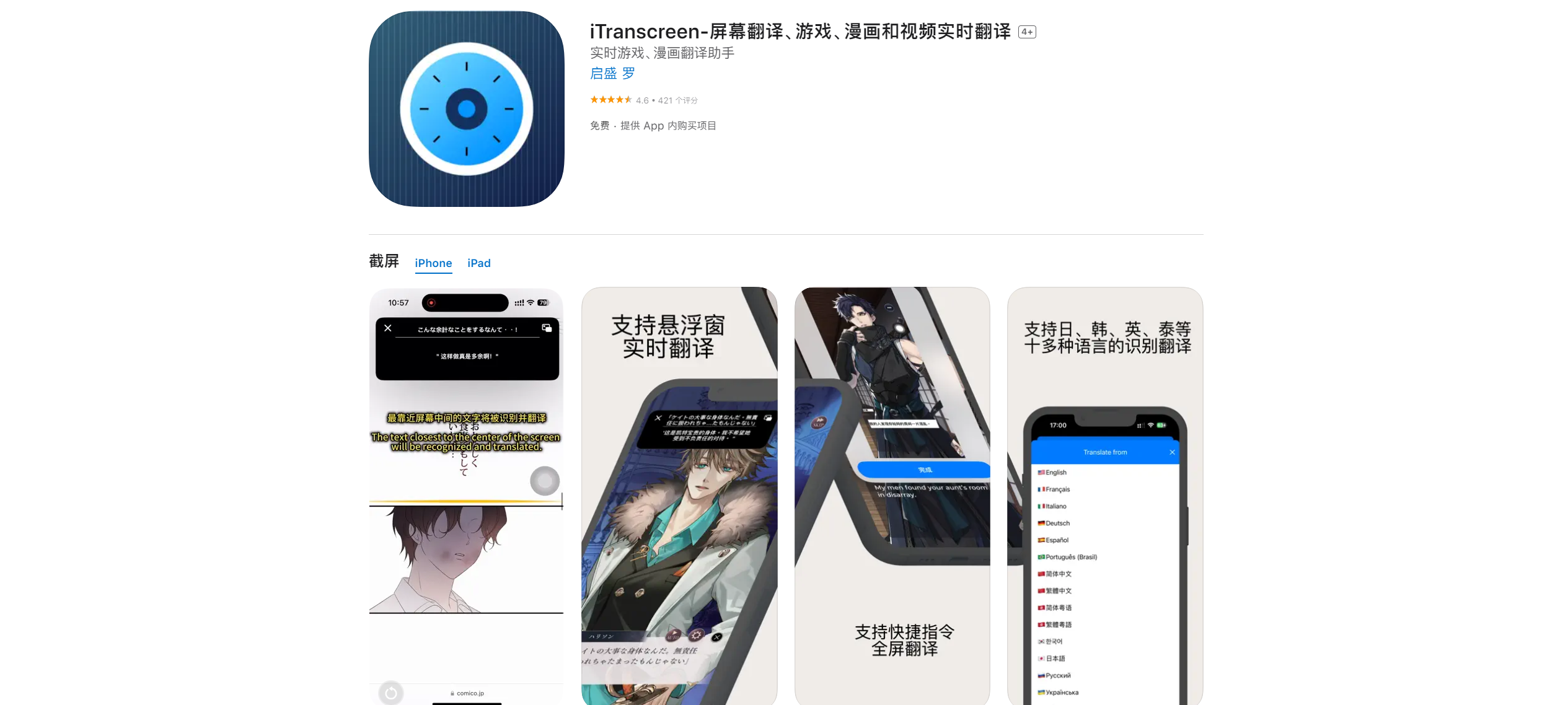 iTranscreen 是一款基于屏幕识别的 AI 翻译 App,无需打开 APP 即可翻译屏幕内容,支持日、韩、英、泰等十多种语言的识别翻译。它可以帮助你翻译含有大量文本但不支持中文的手机游戏,如日乙、英乙、韩乙等,也可以实时翻译漫画和视频字幕。在日常使用手机时,比如旅游订酒店、订票、国外打车、浏览外网等,它也能提供得力的帮助。iTranscreen 具备多种翻译引擎,如谷歌、ChatGPT、百度,提供优质高效的翻译。