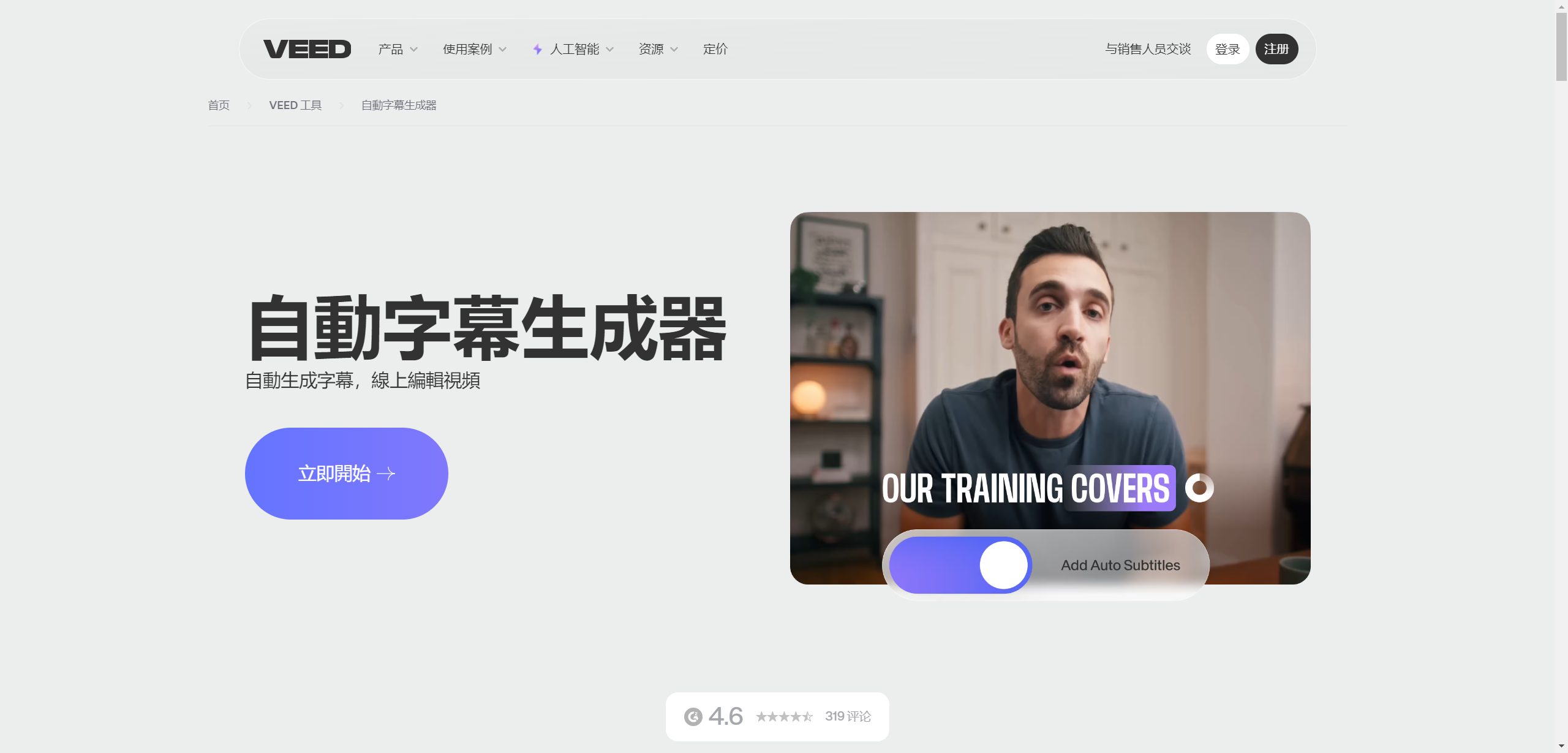 VEED.IO 本质上是一个 AI 视频剪辑工具,而字幕生成功能是它的主要功能之一。VEED.IO 的 AI 字幕生成功能可以准确识别视频人声,为视频在线快速生成风格多样的字幕,生成的字幕可被翻译成多种语言。