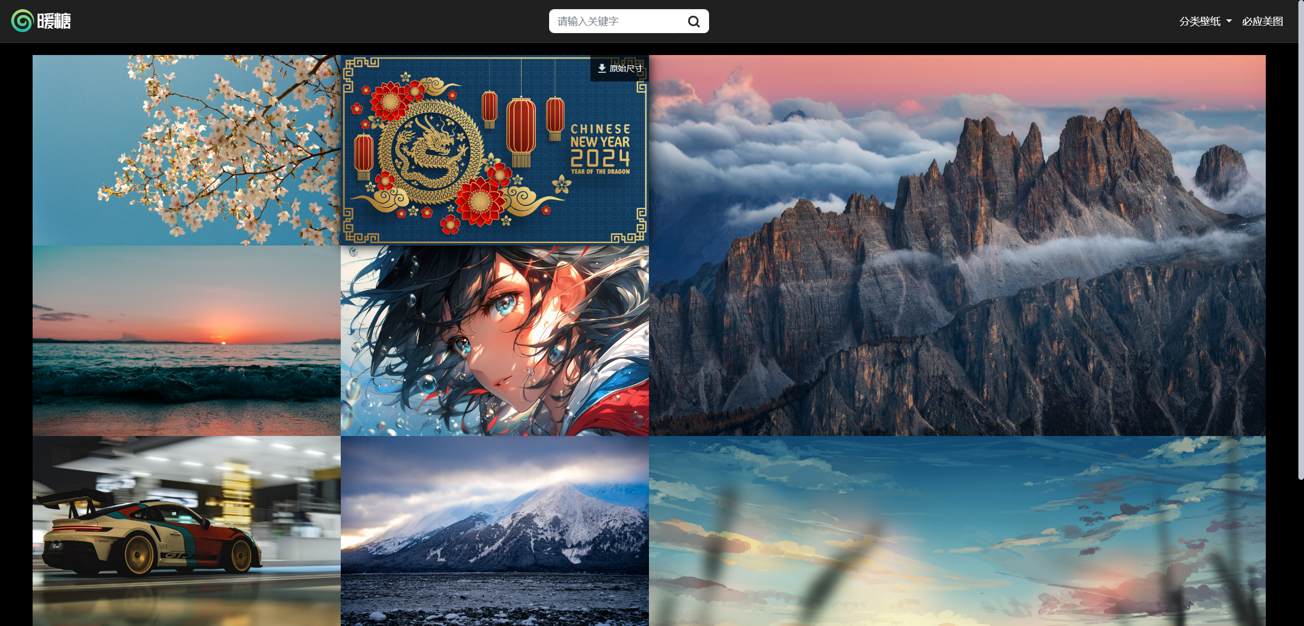 暖糖壁纸是一个免费的电脑壁纸资源网站。暖糖壁纸提供海量高质量电脑壁纸及少量手机壁纸,用户可搜索包含相应关键词的壁纸,也可按分类查看壁纸,网站提供 4K 专区、风景专区、美女专区、动漫专区、明星专区、游戏专区、萌宠专区、小清新专区等等,点击即可下载原始尺寸图片。