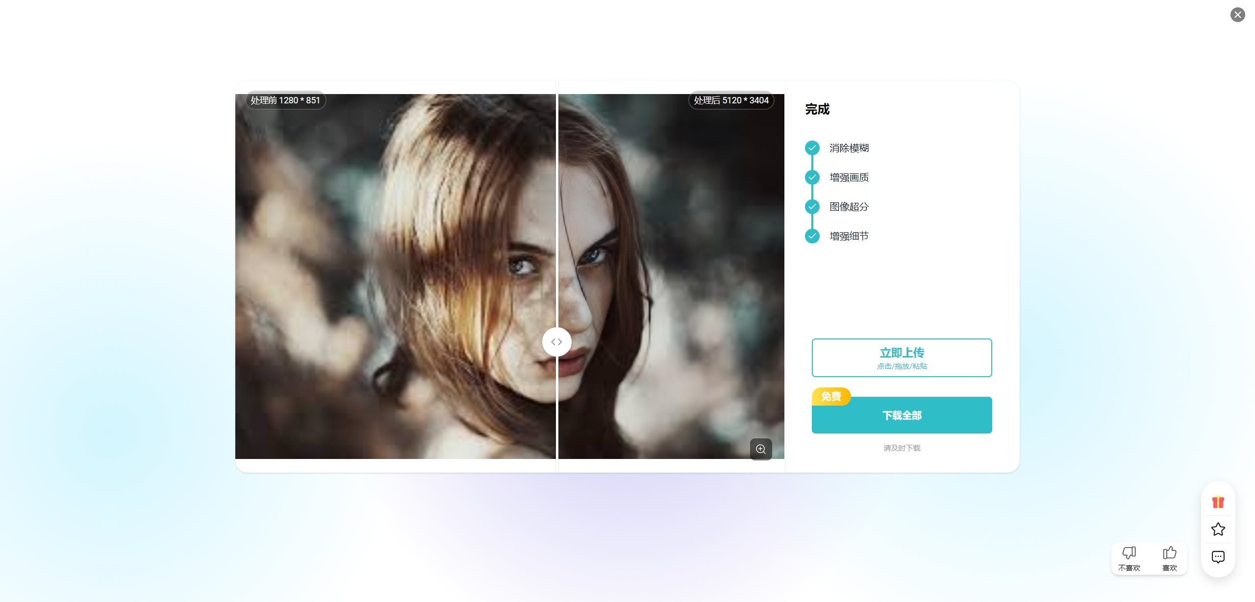 PhotoGrid 部分功能是支持免费使用的,例如AI 图片变清晰、AI 图像放大,无次数限制且下载无水印,其他功能可试用,但有免费次数限制,普遍为 10 次,超出后则需要购买付费套餐。