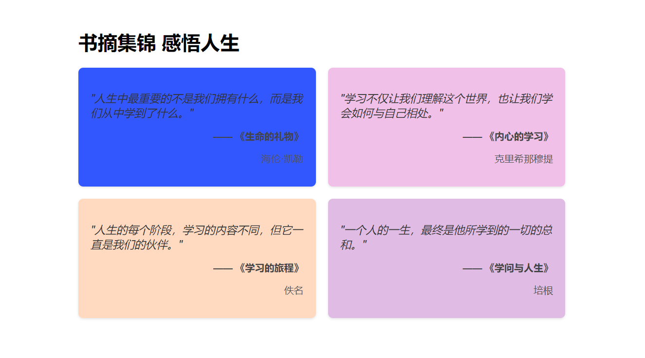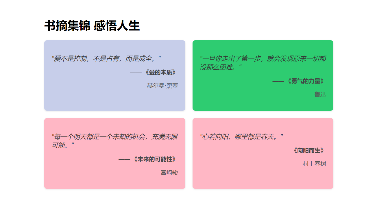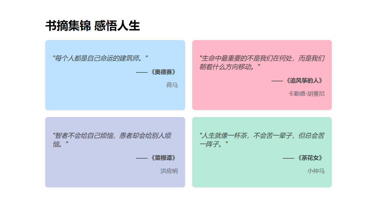 书摘集锦是一个文摘好句推送网站。打开网站后会为用户随机推送四句来自不同著作的佳句语录,适合用作作文积累,丰富文学素养。刷新网页即可更新推送。