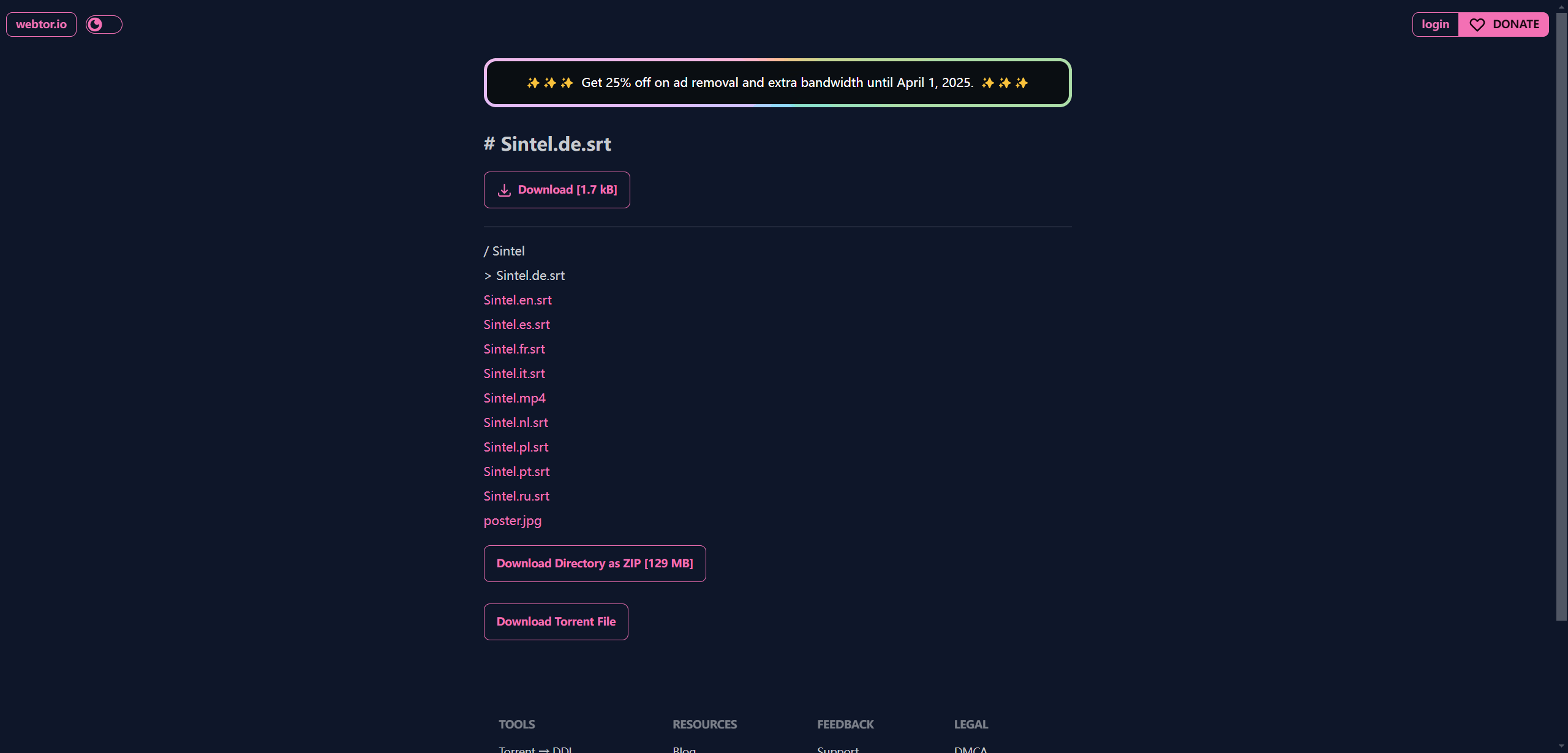 Webtor 是一个可以解析磁力种子链接并允许用户在线观看、下载音视频的网站。通过使用 Webtor,用户可直接将 torrent 文件或磁力链接转换为可下载的链接,而无需另行下载任何客户端,支持将 torrent 文件下载为保留原目录的 ZIP 压缩包。如果你不确定链接中包含的资源是什么,也可以使用 Webtor 在线观看链接中的视频或试听音频,支持多种音视频格式。