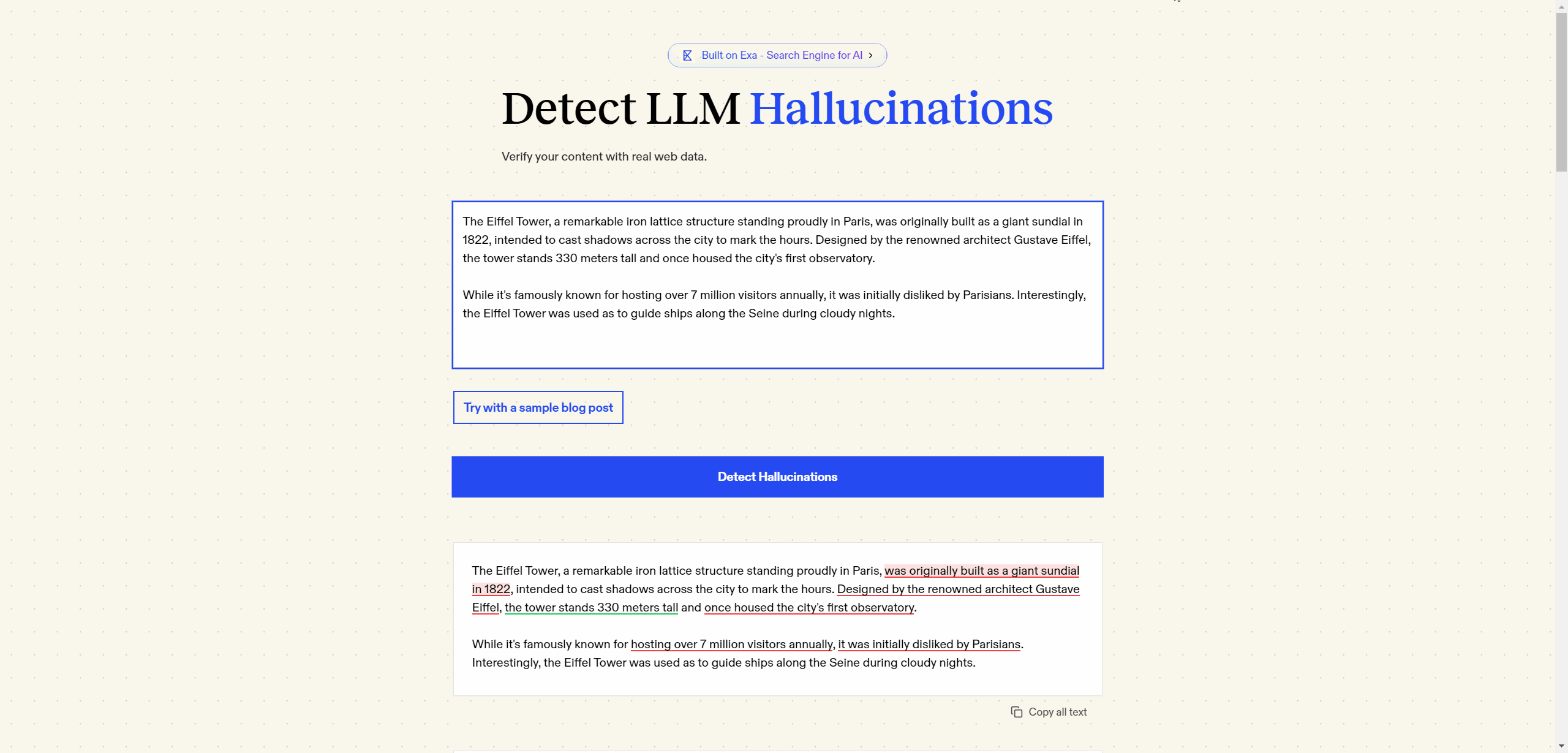 Detect LLM Hallucinations 是一个在线 AI 幻觉检测器,支持检测并修改生成内容。